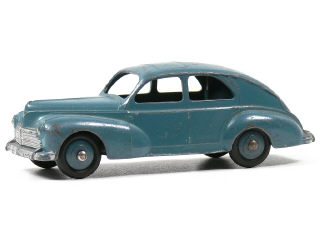 DINKY TOYS (FRANCE) 24R PEUGEOT 203 Petite lunette arrière (version avec intérieur de toit quadrillé & ailes lisses) bleu pétrole, jantes identiques