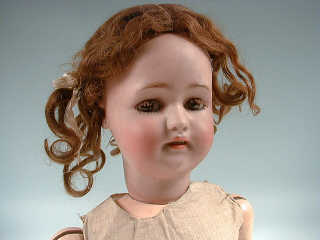 avec tête en biscuit coulé de la maison SIMON & HALBIG, bouche ouverte, yeux bruns en verre - une main incomplète - corps en composition à jambes droites (mécanisme à remonter et à restaurer) - H 60 cm - circa 1905 - ROULLET-DECAMPS était fabricant d'automates et de jouets mécaniques