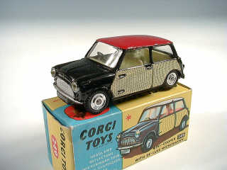 CORGI TOYS (GB) 249 MORRIS MINI COOPER noir, toit rouge, flancs canés