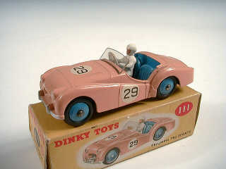 DINKY TOYS (GB) 111 TRIUMPH TR2 de compétition rose, intérieur & jantes bleus