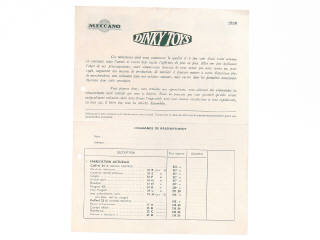 DINKY TOYS (FRANCE) Formulaire de commande 1948