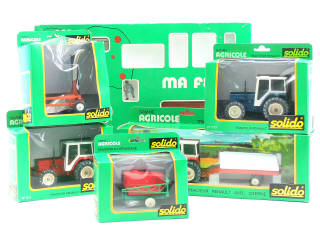 SOLIDO (FRANCE) Ensemble de 4 tracteurs agricoles RENAULT & 5 remorques