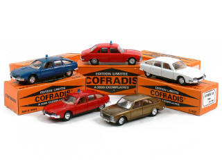 PROMOTIONNEL - série limitée à 3000 exemplaires pour COFRADIS (distributeur de jouets) - miniatures reproduisant les modèles CITROËN & PEUGEOT - avec notices & planches de décalques