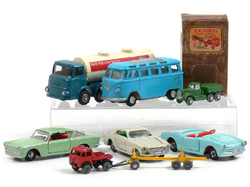 états de 'B' à 'D' - miniatures reproduisant les modèles : ALFA ROMEO (manque pare-brise), FIAT, VOLVO, VOLKSWAGEN, ALBION, WHITE & FODEN (manque chargement) - on y retrouve notamment les marques : BUDGIE MODEL, BENBROS & LONE STAR - un véhicule avec boîte - petite échelle