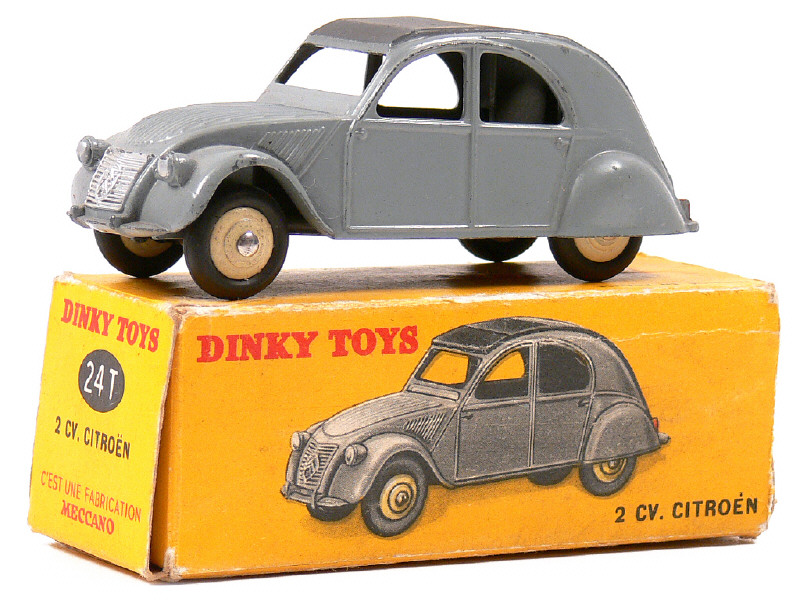 DINKY TOYS (FRANCE) 24T CITROËN 2CV (version avec 3 feux arrière) gris clair, capote gris foncé mat, jantes crème