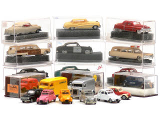 on y retrouve les marques : BUSCH, BREKINA, HERPA, IMU, WIKING, DJH, EKO, RIETZE & PRALINE - petites échelles - 7 modèles sans boîte - petits manques - quelques carrosseries encrassées