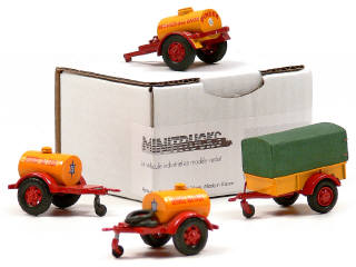 comprend 3 remorques-citernes à eau & une remorque bâchée - on y joint une boîte de la marque référence ACP 24 en état 'b'