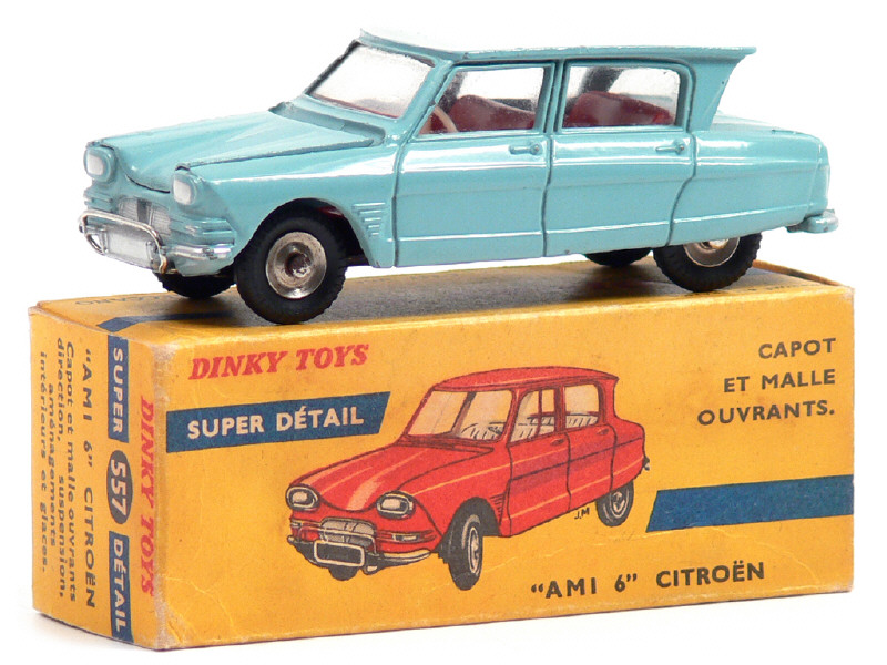 DINKY TOYS (FRANCE) 557 CITROËN AMI 6 (version avec roue de secours sous le capot) gris bleu, toit blanc