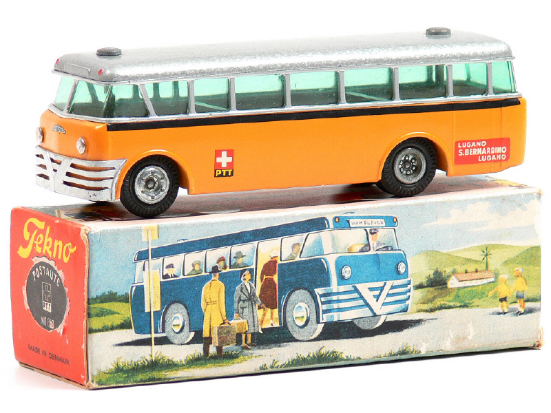 TEKNO (DANEMARK) 850 VOLVO Autobus 'PTT SUISSE' jaune d'or & gris métal