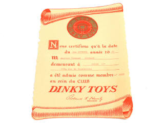 DINKY TOYS (FRANCE) Parchemin 'CLUB DINKY TOYS'
