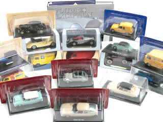 miniatures reproduisant les modèles : RENAULT, MERCEDES, CITROËN, DELAHAYE, CADILLAC & BUGATTI,