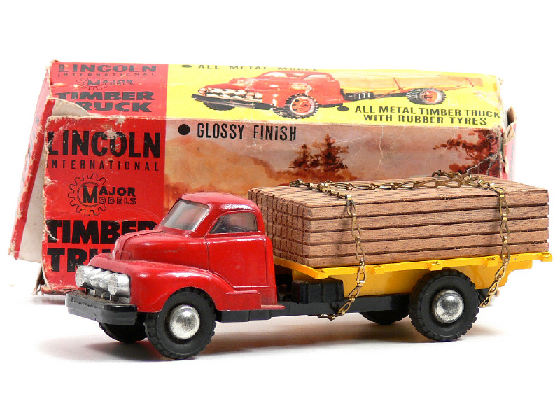 LINCOLN INTERNATIONAL Camion-plateau transport de bois rouge, jaune & noir