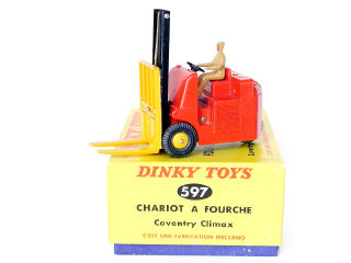 DINKY TOYS (FRANCE) 597 COVENTRY CLIMAX Chariot élévateur (version avec jantes convexes) orange & jaune