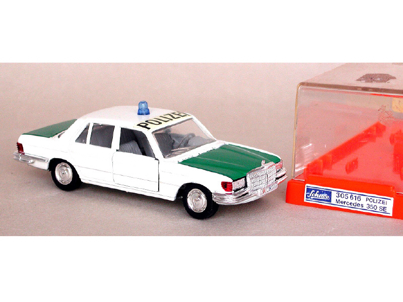 SCHUCO (ALLEMAGNE) 305616 MERCEDES 350SE 'POLIZEI' blanc & vert