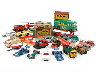 états de 'A' à 'F' - on y retrouve les marques : MATCHBOX, MAJORETTE, TRIANG, POLISTIL, NOREV, GAMA & POLITOYS - 5 modèles en boîte - petits manques