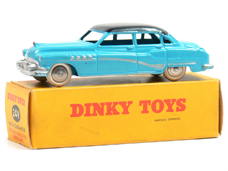 DINKY TOYS (FRANCE) 24V BUICK ROADMASTER (version avec intérieur de toit quadrillé & jantes chromées) 2 tons de bleu