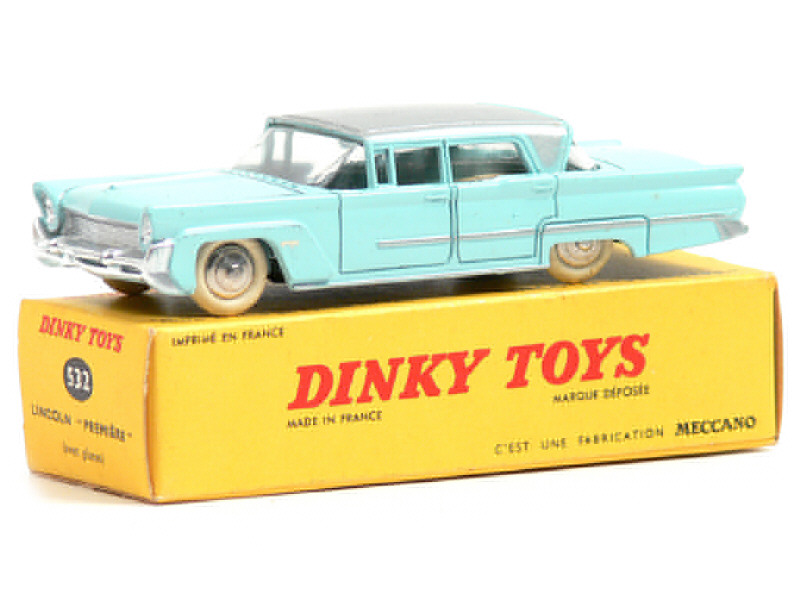 DINKY TOYS (FRANCE) 532 LINCOLN PREMIERE (version avec jantes convexes) bleu ciel, toit gris métal