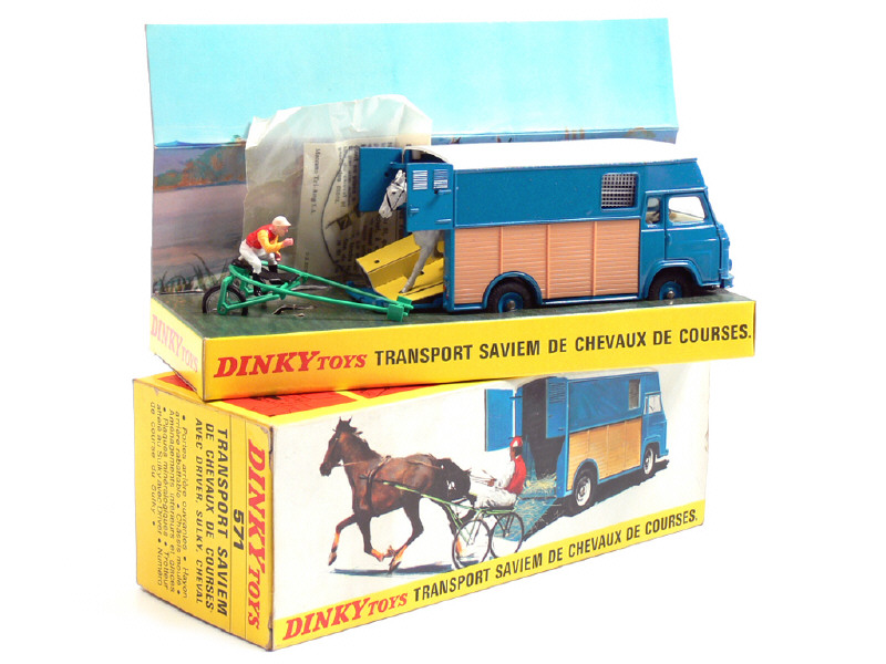 DINKY TOYS (FRANCE) 571 SAVIEM Goélette transport de chevaux bleu, bois, toit blanc