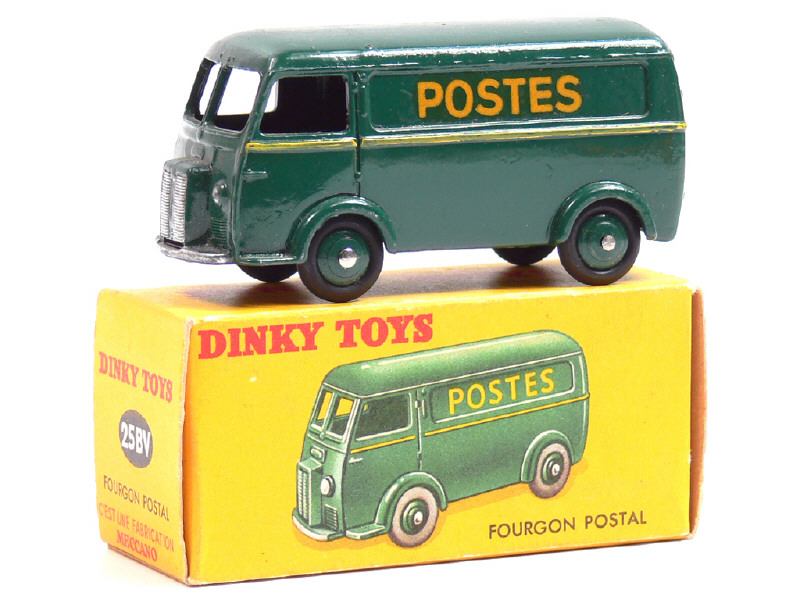 DINKY TOYS (FRANCE) 25BV PEUGEOT D3A 'POSTES' (version avec inscriptions en décalques & 1er type) vert foncé