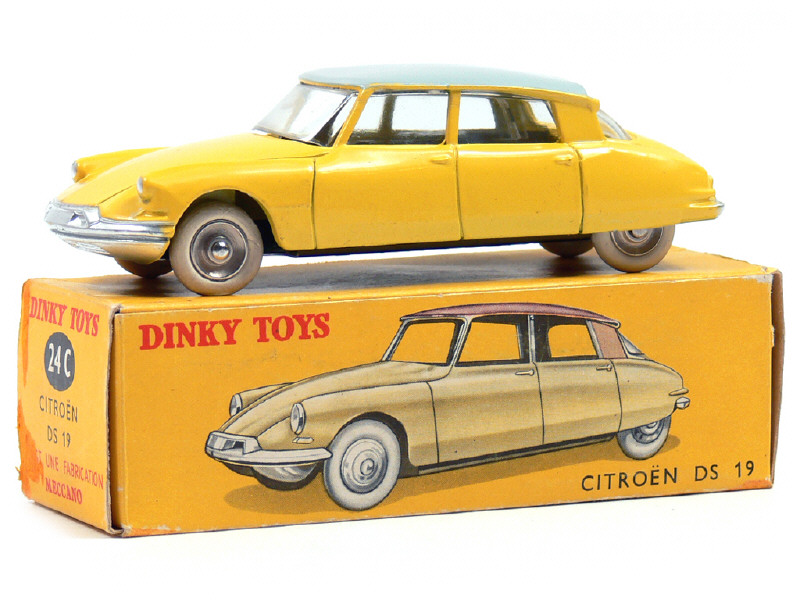 DINKY TOYS (FRANCE) 522 CITROËN DS 19 (version avec vitres & jantes concaves) jaune d'or, toit gris clair