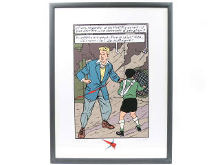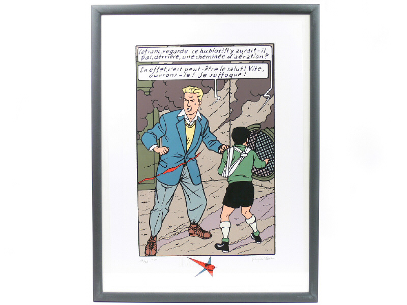 dessin tiré de la bande dessinée de Jacques MARTIN 'LA GRANDE MENACE' - dimensions : 75 x 55 cm - encadrée sous verre - tirage limité signé & numéroté 11/24 exemplaires - verre fendu dans l'angle inférieur droit