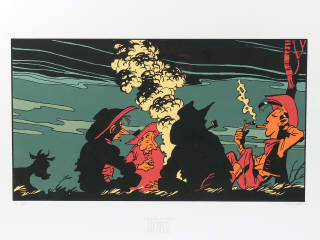 dessin tiré de la bande dessinée de MORRIS 'LE JUGE' - dimensions : 75 x 55 cm - réalisation sur papier d'ARCHE pur chiffon - encadrée sous verre - tirage limité signé & numéroté 23/30 exemplaires - avec certificat d'authenticité