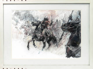 dimensions : 80 x 60 cm - dessin original représentant des cavaliers signé dans l'angle inférieur droit par ROSINSKI