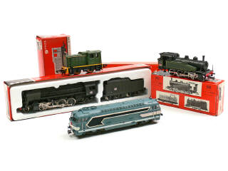 comprend : une motrice BB 67001, un tracteur diesel D 2705 (avec détails de peinture ajoutés), une loco-tender type 040 (petits détails de peinture rouge ajoutés sur l'embiellage) & une locomotive à vapeur type 141 R - 2 boîtes en état 'c'