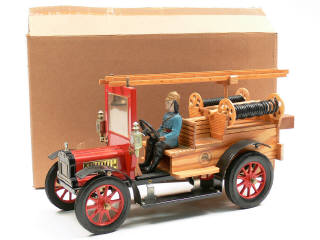 CARETTEMODELL (ALLEMAGNE) BENZ Camion grande échelle de pompiers du début du XXème siècle rouge, noir & bois