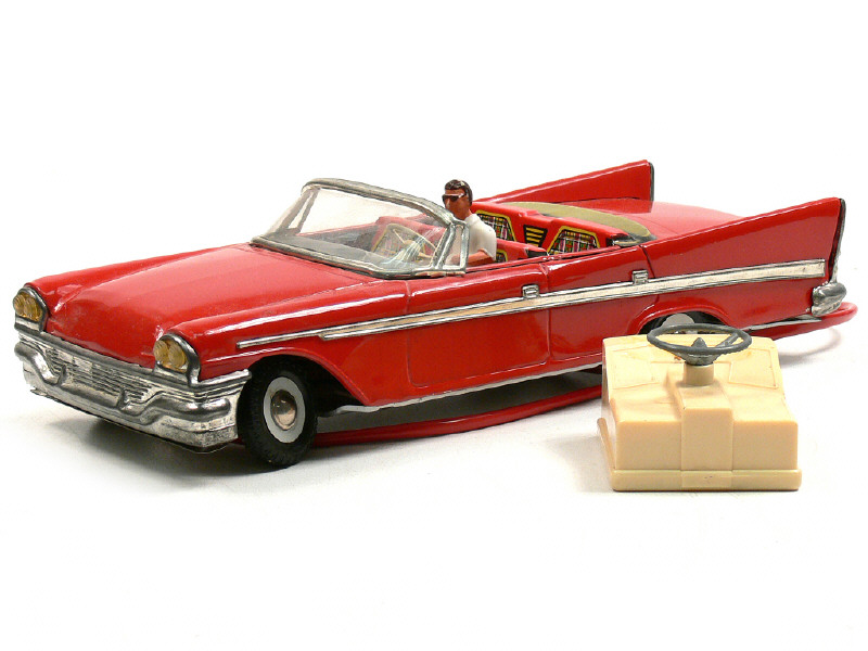 longueur 35 cm - moteur à pile (fonctionne) - avec conducteur, phares & avertisseur sonore - manque 2 agrafes de pare-chocs arrière