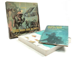 avec notice, cartes, scaphandriers, Nautilus & accessoires - petits manques sur 2 éléments - fabrication des années 1952-1954 - on y joint un livret de présentation du film de Walt DISNEY vendu à l'époque dans les salles de cinéma lors de la projection du film (couverture incomplète)