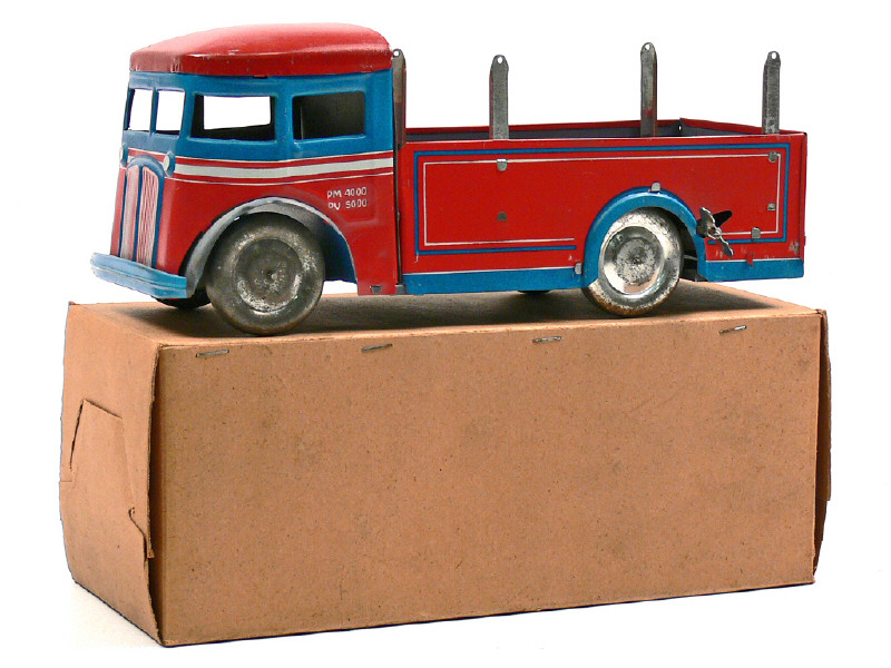 longueur 27 cm - moteur à ressort (fonctionne) - version avec boîte en carton brut sans identification ni illustration - manque chaînes de ranchers