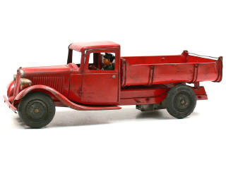 longueur 43,5 cm - fabrication de 1936-1939 - moteur à clef (à revoir) - avec conducteur (repeint) - manque cerclage de volant, poignées de portières & ampoules - quelques traces d'oxydation