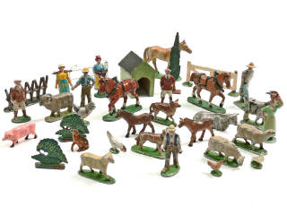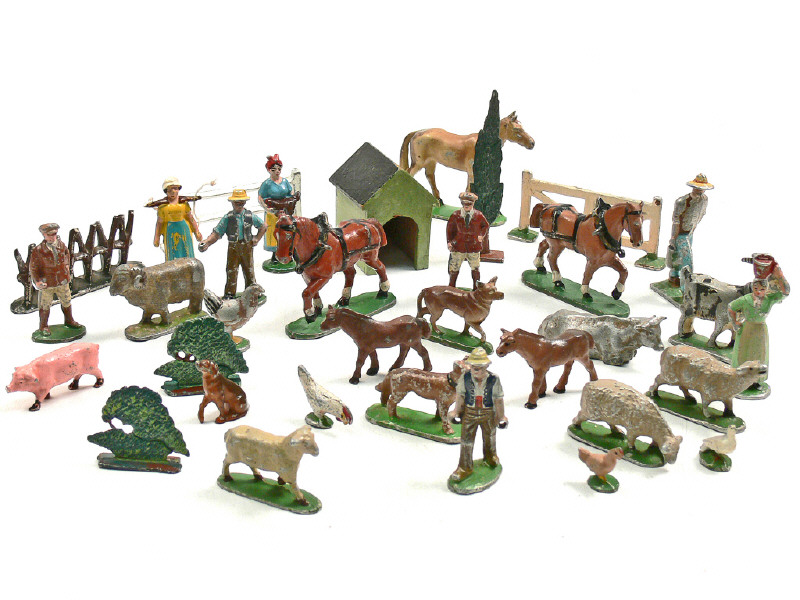 QUIRALU (FRANCE) Ensemble de 27 figurines & 6 éléments de décor