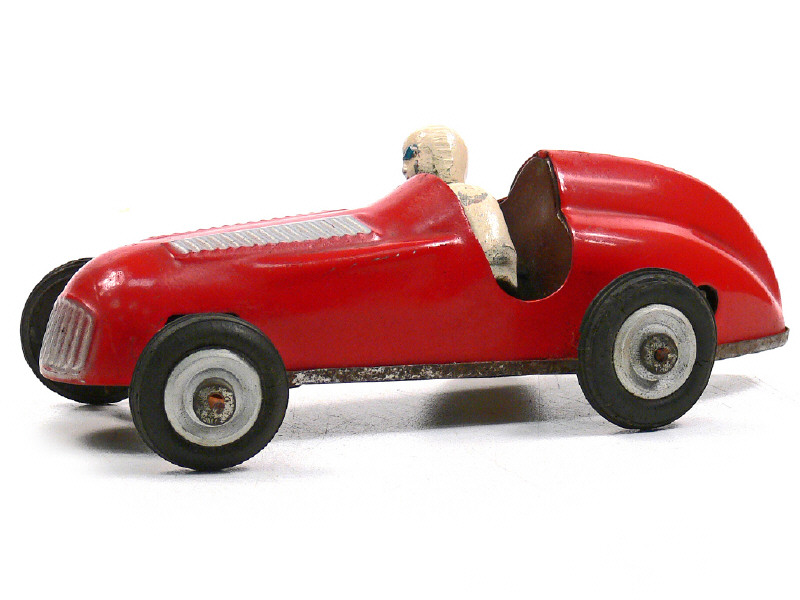 longueur 16 cm - moteur à clef (à revoir) - direction par basculement du pilote - tête du pilote avec métal fatigue - traces d'oxydation sur les parties nickelée & à l'intérieur de la carrosserie