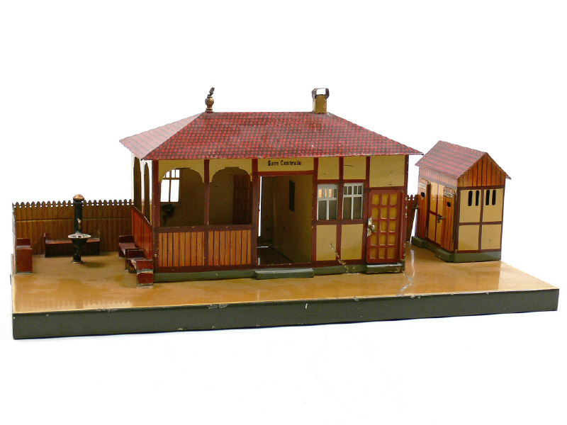 MÄRKLIN 'O' (ALLEMAGNE) Gare centrale en tôle peinte marron, crème & brique