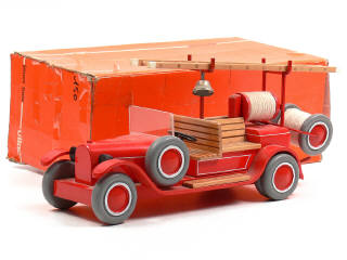 VILAC (FRANCE) Voiture échelle de pompiers en bois peint rouge & bois