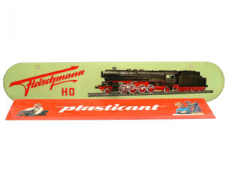 DIVERS Enseigne de magasin lumineuse 'FLEISCHMANN HO' à 2 faces en verre vert pâle & rouge