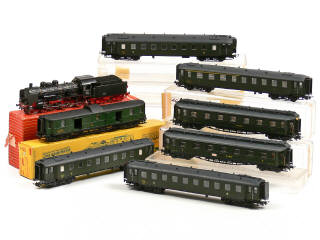 LILIPUT 'HO' (AUTRICHE) Ensemble d'une locomotive à vapeur, 6 voitures de voyageurs & un fourgon à bagages