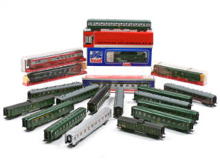 JOUEF 'HO' (FRANCE) Ensemble de 16 voitures de voyageurs, 3 fourgons & une motrice électrique