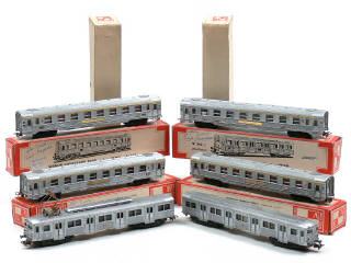 V.B. 'HO' (FRANCE) Ensemble de 4 voitures de voyageurs inox 'LE MISTRAL' gris métal