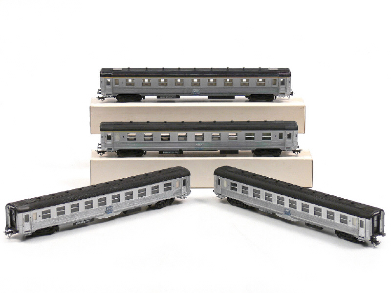 EUROPOLITRAINS (FRANCE) Ensemble de 4 voitures de voyageurs inox 'SNCF' gris métal & noir