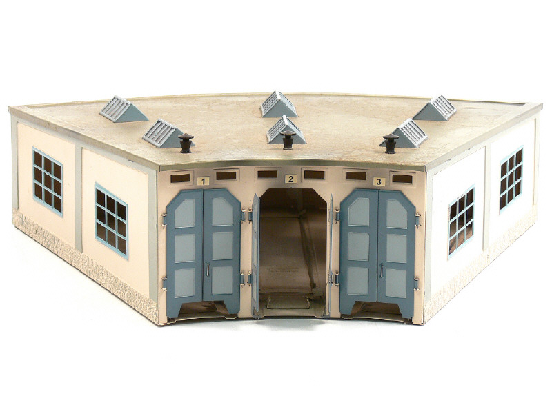 MÄRKLIN 'HO' (ALLEMAGNE) 7028 Hangar à locomotives en tôle peinte blanc cassé, bleu & gris vert