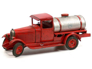 longueur 44,5 cm - fabrication de 1932/1934 - version avec pneus caoutchouc 'MICHELIN SUPERCONFORT' - moteur à clef (fonctionne) - direction par le volant - parties repeintes - phares électriques (une ampoule à revoir) - quelques petites traces d'oxydation - frein d'essieu arrière non d'origine