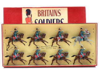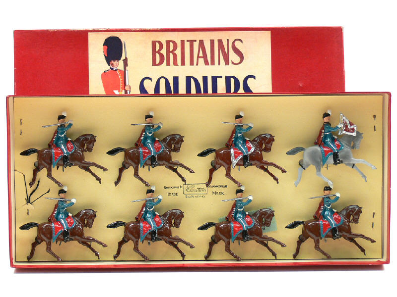 contient 8 hussards dont 7 à cheval avec sabre sur l'épaule & un avec clairon - avec bon de contrôle & ficelle de maintien d'origine - SUPERBE !