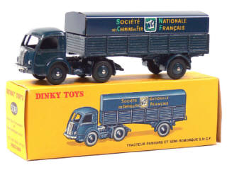 DINKY TOYS (FRANCE) 32AB PANHARD Semi-remorque 'S.N.C.F' (version avec intérieur de toit quadrillé) bleu foncé (fond de l'écusson quadrillé)