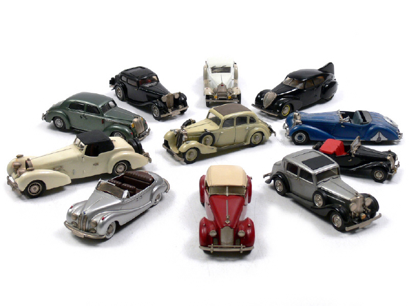 miniatures reproduisant notamment les modèles : BMW, BUGATTI, BENTLEY, JAGUAR & MG - quelques petits manques - 2 pare-brise incomplets