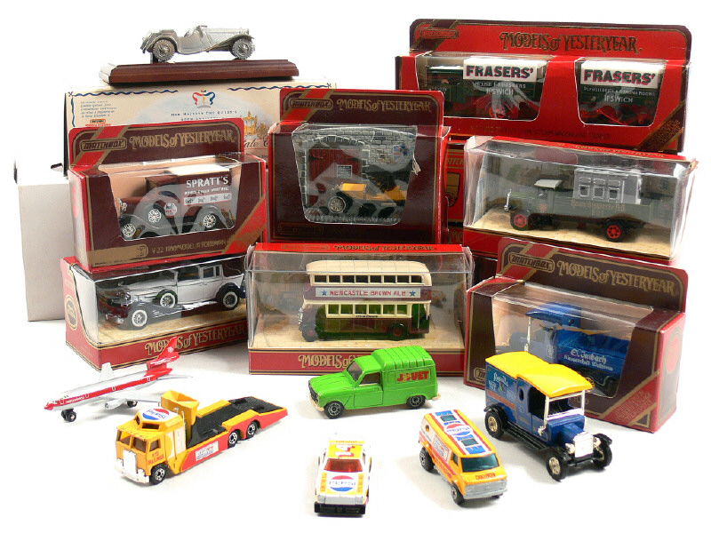 états de 'A' à 'D' - miniatures reproduisant notamment les modèles : MERCEDES, LEYLAND, FORD, FODEN, CHEVROLET, DOUGLAS, PRESTON, JAGUAR, KENWORTH, RENAULT, CADILLAC, SIMPLEX, AUSTIN, BMW & ROSENGART - 6 véhicules sans boîte, 18 de la série MODELS OF YESTERYEAR - petits manques - un utilitaire de la marque SOLIDO