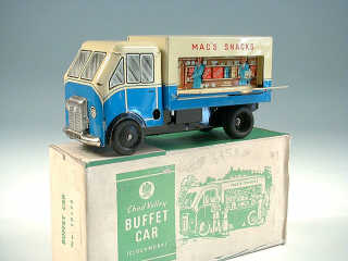 CHAD VALLEY (GB) 10134 Camion-buffet 'MAC'S SNACK' en tôle lithographiée bleu & crème