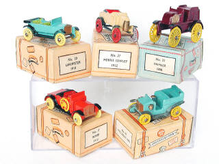 états de 'A' à 'B' - miniatures reproduisant les modèles : ROVER, WOLSELEY, LANCHESTER, MORRIS & DAIMLER - présence de métal fatigue sur 2 modèles - avec boîtes